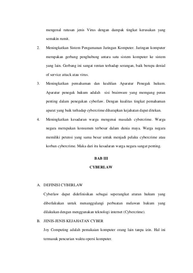 kita berantas keberadaaanya. Cyberlaw adalah salah satu perangkat yang dipakai oleh